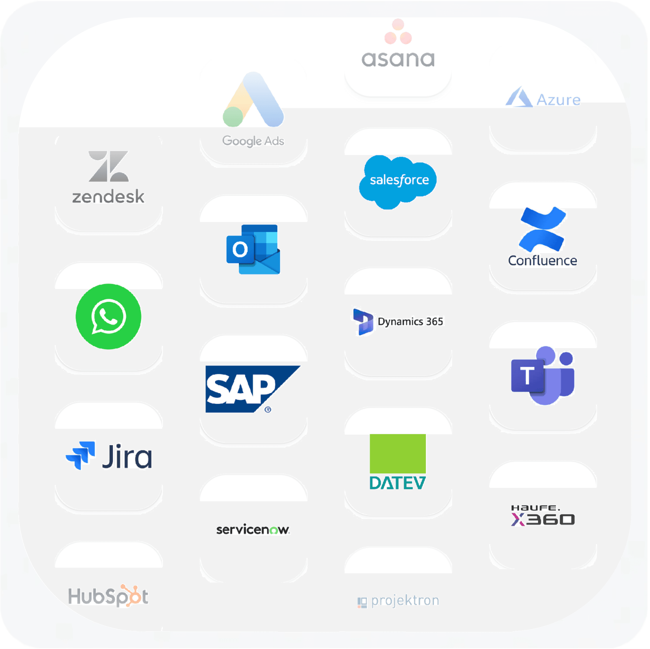 Steigern Sie Ihre Produktivität, optimieren Sie Prozesse und sorgen Sie für nahtlose Verbindungen - ohne den laufenden Betrieb zu stören. Unsere KI-Agenten verfügen über standardisierte Schnittstellen und sind so einfach und schnell auch mit Ihrer individuellen IT-Systemlandschaft kompatibel.